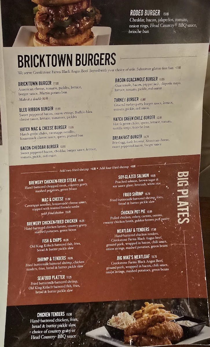 Welcome to Bricktown Brewery, a vibrant culinary haven located in the heart of Oklahoma City. Step into a warm atmosphere where exceptional service meets tantalizing flavors. The menu boasts a diverse selection, from hearty Kickin' Chicken Sliders to refreshing Mango Shrimp Tacos, each dish crafted to perfection. Don’t miss out on the Party Trio, a crowd-pleasing platter featuring house-made guacamole, salsa, and queso, perfect for large gatherings.
